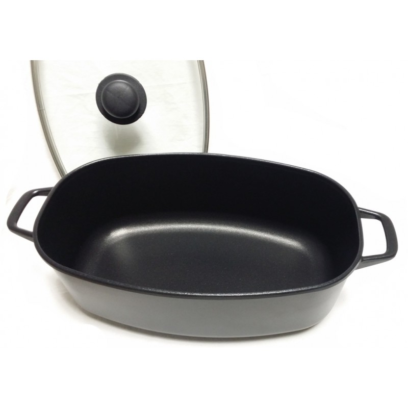 Casseruola ovale grande 42x26 con coperchio vetro, antiaderente Fusione