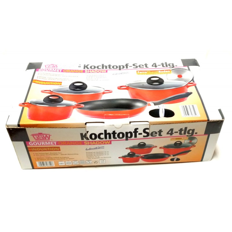 Batteria Pentole GSW Gourmet Orange Shadow 4 Pezzi + 3 coperchi