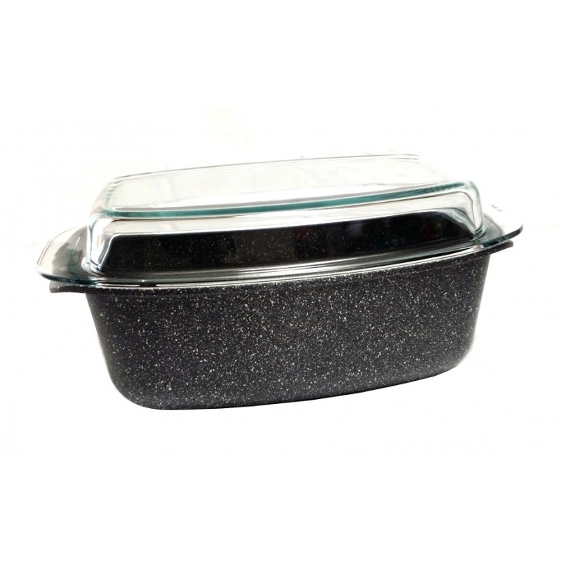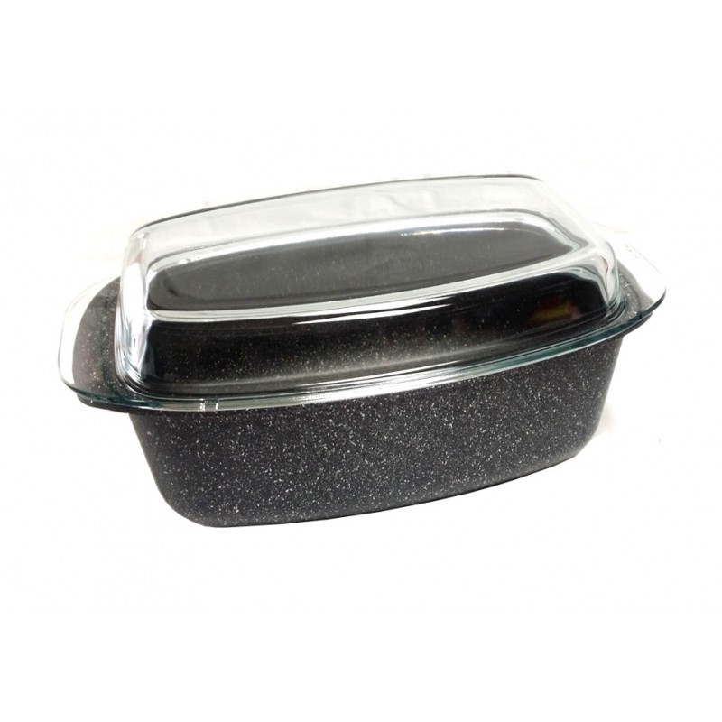 Ultima NOVITA' della Linea in "minerale di pietra", questa pentola ovale di boune dimensioni dotata di coperchio in vetro PYREX, si presta particolarmente alle cotture in forno, ma anche sul gas grazie al suo coperchio, il quale può essere usato anche come pirofila.